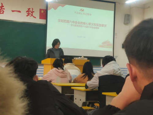 按照省教育厅要求和学院党委安排,思政部全体教师聚焦如何将党的十九届六中全会精神融入思政课教学进行集体备课。从12月9日开始,在思政部部长王瑛的领导和安排下,有序分批的开展了“如何将十九届六中全会精神融入课堂教学”的专题集体备课会,与会教师分享学习体会和教学思考,开展交流,完善了教学课件。
