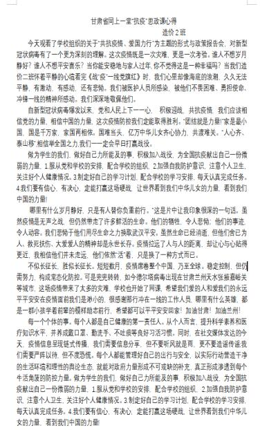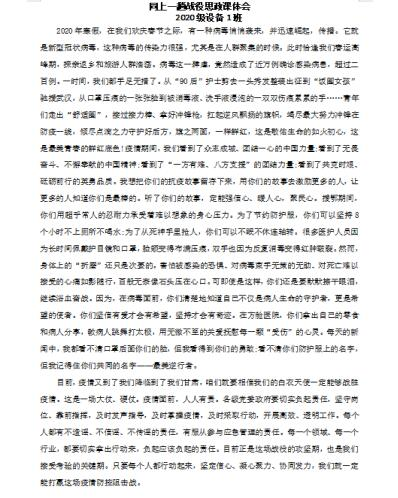 此次战“疫”动人心魄,发人深思。观看结束后,师生们感触良多,纷纷表示学习了这一堂生动的战“疫”思政课后触动很深,受益匪浅,每个心得体会分享都能戳中学生心中最温暖的情感,有些同学观看时流下了感动的泪水,纷纷写下心得体会。