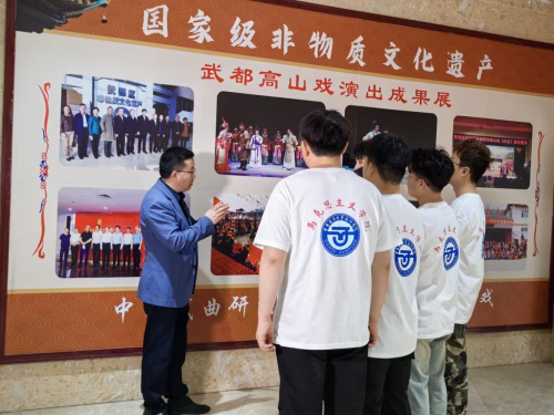 本次实践活动分为专家解读、历史溯源、实地探寻、研讨交流四个环节,老师带领学生与国家级非物质文化遗产“武都高山戏”代表性传承人尹维新老师和全国非遗先进工作者、“武都高山戏”代表性传承人、武都区非遗中心主任尹利宝老师进行了学习探讨。