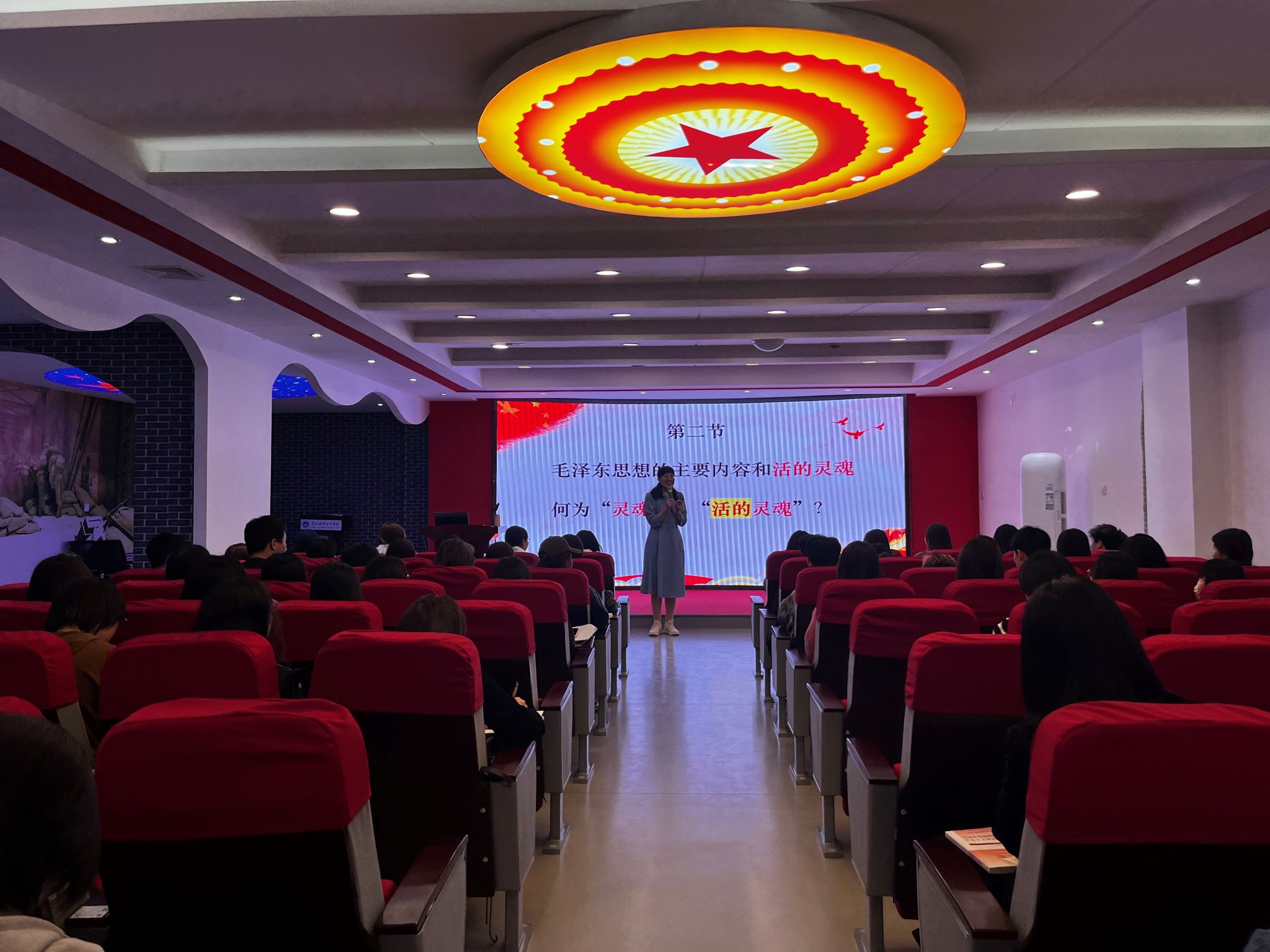 上午,甘肃财贸职业技术学院马克思主义学院寇明英教授以“毛泽东思想活的灵魂”为主题,为与会教师呈现了一堂精彩的示范公开课。寇明英教授备课充分,教态自然,语言生动活泼,融入丰富的历史故事,并善于结合现实案例进行分析,注重与学生积极互动,取得了较好的教学效果。