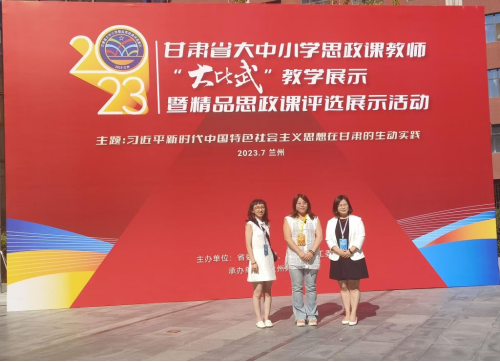 7月28日-30日,由甘肃省委宣传部、省委教育工委主办,兰州大学承办的2023年全省大中小学思政课教师“大比武”教学展示暨精品思政课评选展示活动总决赛在兰州大学成功举办。甘肃省委教育工委专职副书记、省教育厅党组成员张晓东、兰州大学党委副书记曹爱辉到决赛现场观摩指导。我院马克思主义学院朱诗蕊老师参赛作品《毛泽东思想活的灵魂——实事求是》荣获三等奖,哈小琴老师参赛作品《践行爱国主义 弘扬中国精神》荣获优秀奖。